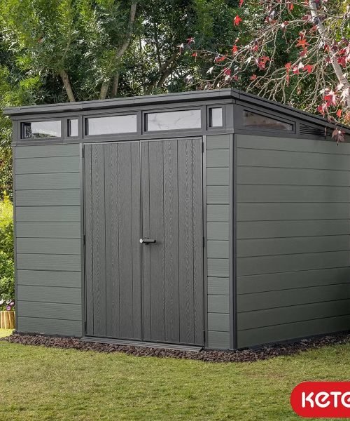 • Keter 9’x 7′ Cortina Heavy Duty Plastic Pent Shed – Dark Green