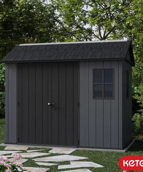 Keter 9’x7.5′ Newton Plus Side Entry Plastic Shed – Dark Grey